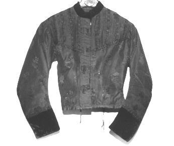 Caraco d'apparât en satin broché avec col et revers de manche en velours