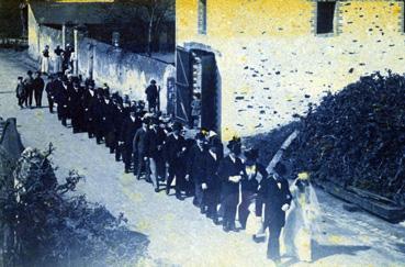 Cortège de noce devant l'école, rue de la Mairie