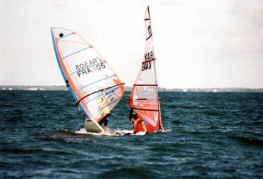 Deux planches à voile au coude à coude