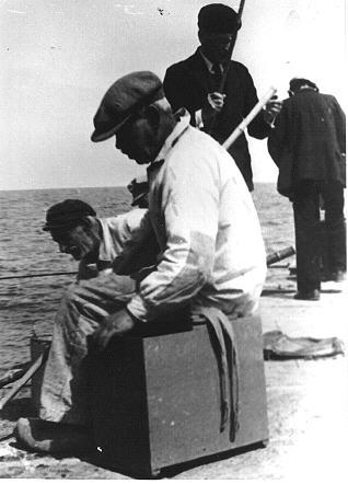 Pêcheur assis sur une caisse