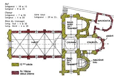 Plan de l'église au XIIe et XIXe siècles