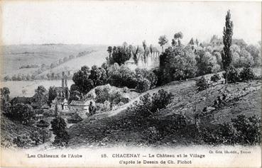 Le château et le village d'après le dessin de Ch. Fichot