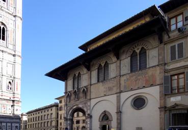 | Note | Le palazzetto est construit pour la Compagnie de Sainte-Marie de la Miséricorde entre 1352 et 1358, par l'architecte Alberto Arnoldi à l'époque où existe la maison-tour toscane des Adimari, détruite ensuite après l'expulsion de la ville de la famille pour de son appartenance guelfe (1248). La nouvelle construction, quoique édifiée en pleine période gothique, correspond à la réalisation de l'Hôpital des Innocents et respecte les principes architectoniques de style Renaissance. D'abord orphelinat de la Compagnie, l'espace muséal n'occupe que la partie basse avec le point d'informations touristiques, le seul de la ville près du Duomo |