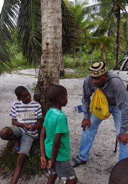 Sombra, conteur du Suriname, contant à des enfants