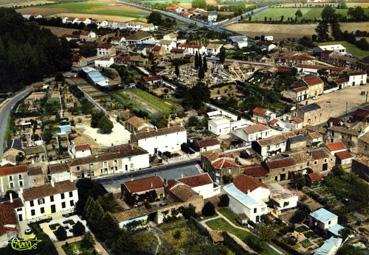 Mots Clé vue aérienne ; bourg, ville, (vue générale) ; aménagement urbain ; cimetière, ossuaire ; architecture traditionnelle ;