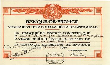 Versement d'or pour la défense nationale