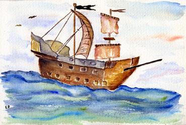 Galion, aquarelle d'Elisabeth François