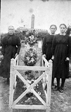 Mère et ses filles sur la tombe du père
