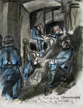 Mots Clé caserne, local militaire ; militaire(s), soldat(s), ; guerre 1914-1918 ; art graphique, pictural ;