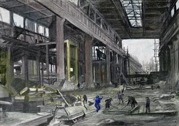 | Mots Clé | architecture industrielle, usine, atelier ; industrie généralité ; métallurgie, acierie, ; guerre 1914-1918 ; art graphique, pictural ; |