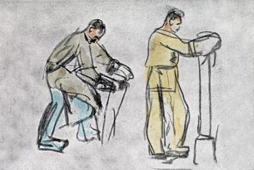 Note Dessin extrait de Armement et munitions (1915-1919), de Lucien Jonas (1880-1947), auteur de carnets de croquis de guerre édités par la Librairie Dorbon-Ainé, Paris.