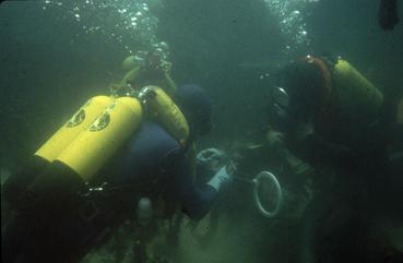 Fouilles du Maidstone - Plongeurs avec un détecteur de métaux