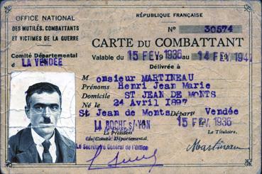 Carte de combattant - Henri Martineau