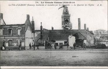 La ville d'Albert bombardée et incendiée par les Allemands - Le quartier de l'église