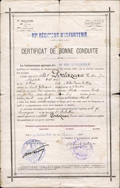 Certificat de bonne conduite de Théodore Pontoizeau