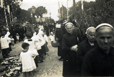 | Mots Clé | Fête-Dieu ; fête, manifestation religieuse ; assistant(s) du culte ; coiffe(s), bonnet(s) ; |