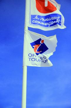Drapeaux Office du tourisme et U les nouveaux commerçants