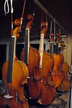 Coin d'atelier, les pendus, chez le luthier Jean-Paul Boury