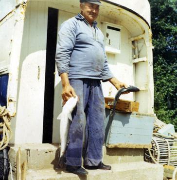 Le père André montrant sa pêche