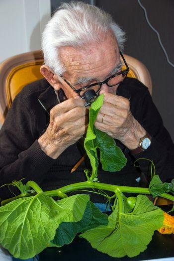 Alfred Hérault observant une plante