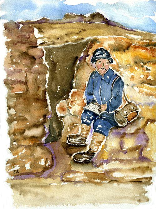 Dans les tranchées la lecture, aquarelle E. François