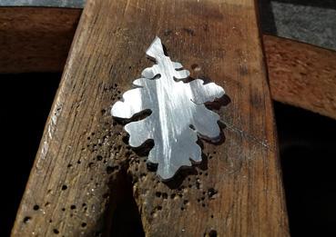 | Note | Découpe d'un motif de feuille de chêne sur plaque d'argent |
