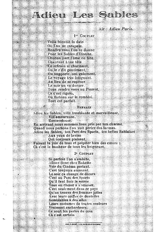 | Incipit du refrain | Adieu Les Sables / Ville troublante et merveilleuse |