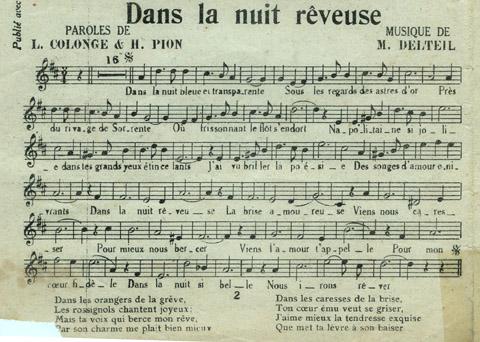 | Incipit du couplet | Dans la nuit bleue et transparente / Sous le regard des astres d'or |