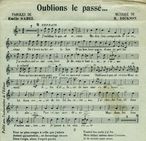 | Incipit du refrain | J'oublirai le passé, reviens / Ma douleur, comprends-le, fut extrême |