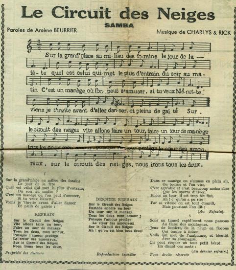 Incipit du refrain Sur le circuit des neiges / Vite, allons faire un tour