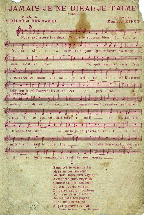 | Incipit du refrain | Jamais je ne dirai / Je t'aime |