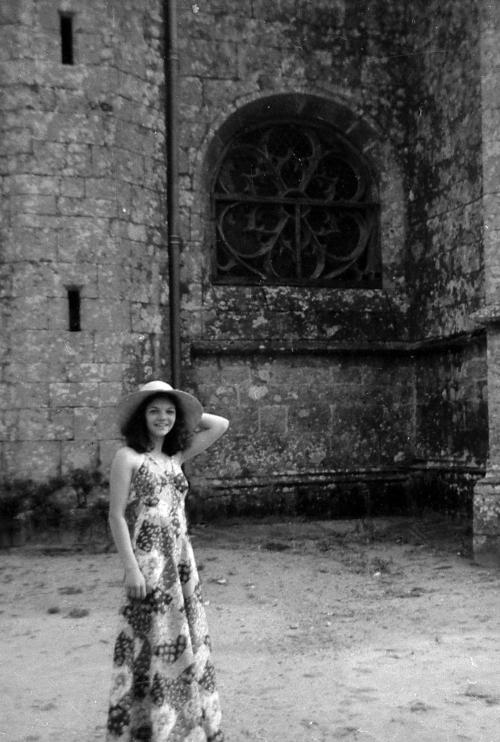 Jeune femme posant devant l'église