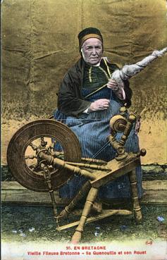 Vieille fileuse bretonne - Sa quenouille et son rouet