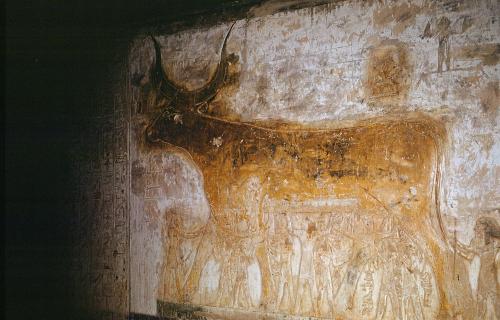 | Note | Nout, le ciel figuré par une vache, dont les quatre pieds reposent sur la terre, mais dont l'échine supporte la voûte céleste. |