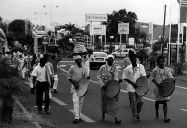 Saint-Pierre - rituel tamoul, les percussionistes en procession