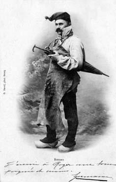 | Mots Clé | costume folklorique ; saboterie : sabotier, sabot(s), bot(s), galoche(s) ; parapluie(s), ombrelle(s) ; bonnet(s) ; |