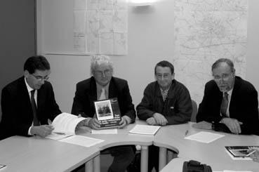 | Note | de g. à d. Didier Mandelli, maire, Jean-Pierre Bertrand, l'auteur, Jean Mignet, trésorier Vendée Patrimoine, et Philippe Côme, président d'Arexcpo |