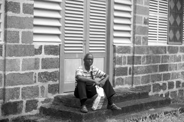 Apollinaire Anakesa près de la chapelle du bagne, île du Salut