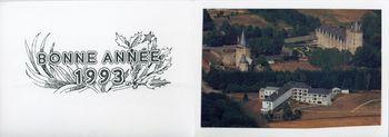 Note | Vue aérienne du château de la Groulais et de la Maison Notre-Dame de la Groulais. Carte de voeux envoyée en janvier 1993. |