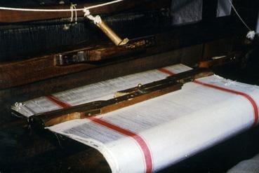 Toile sur le métier dans la cave du tisserand