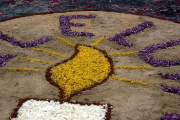 Fête-Dieu - Décors de fleurs sur le parvis