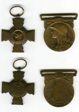 Décorations de M. Raballand, la Croix du Combattant et de Grande Guerre 1914-1918