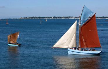 Le cotre sardinier 'Marche-Avec' sous voiles et une chaloupe