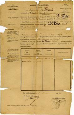 Certificat de Marine et Colonies, frégate l'Alceste