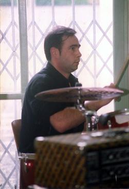 | Note | Le batteur des Spewmen en concert au foyer des jeunes de Montaigu. |