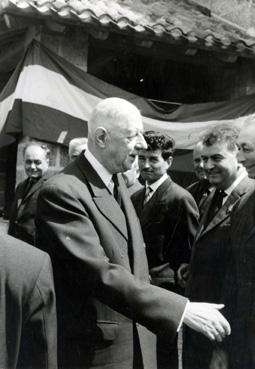 Le général de Gaulle serrant la main aux élus locaux lors de sa visite