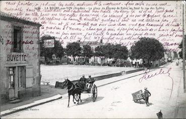 La place du Champ de foire, au fond la rue des Sables