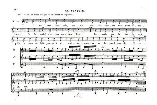 | Texte de la chanson | Il est tard, bonsoir, bonne nuit la sombre nuit nous éconduit À demain quittons-nous sans bruit. Demain que le festin s'apprête en mon réduit Jusqu'à minuit demain sera le grand jour de fête. |