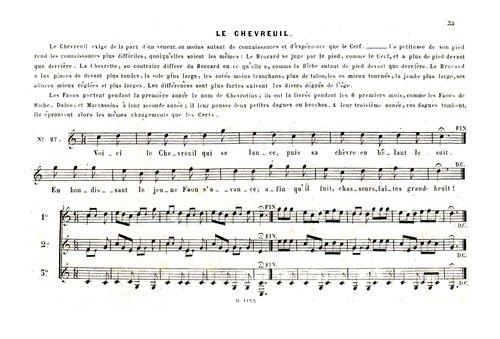 | Incipit du couplet | Voici le chevreuil qui s'élance / Puis sa chèvre en bêlant le suit. |