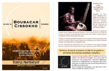 Affiche du concert de Boubakar Cissoko au temple